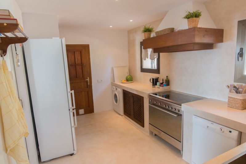 Binnen zijn er 3 slaapkamers, te bereiken via een open hal.De keuken is ruim ingericht en is van alle gemakken voorzien. Er is een lichte woonkamer, met een eettafel voor 7 personen. Vanuit de woonkamer kan via 2 openslaande deuren het terras bereikt worden. Op het terras geniet je van het prachtige uitzicht over de zee en Cala Vadella. Er zijn ligbedjes, een lounge gedeelte en grote eettafel. Ook de BBQ ontbreekt niet.