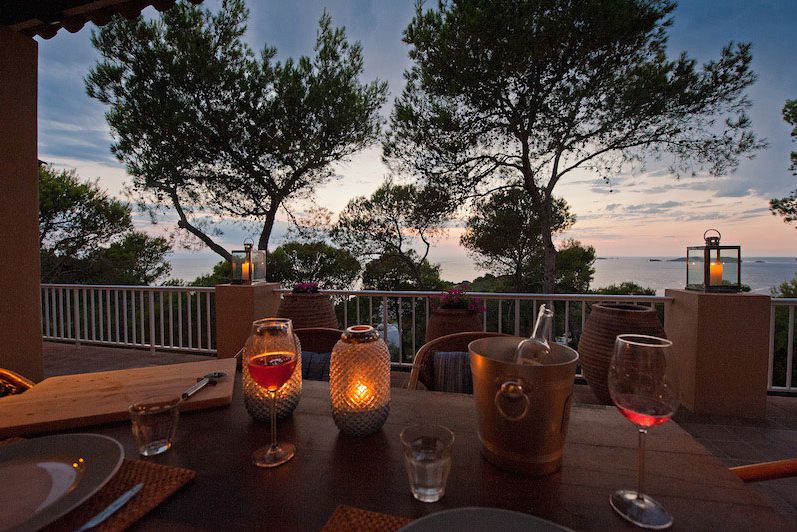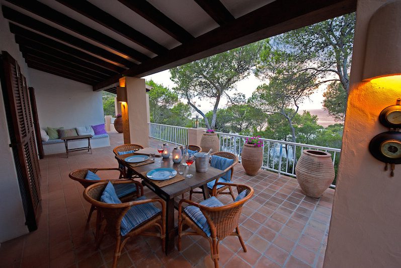 Dit mooie moderne huis staat boven op een berg in een rustgevend gebied bij de baai van Cala Vadella. Vanuit het huis kunt u genieten van het adembenemende uitzicht over zee. Omdat dit huis aan het einde van een weg ligt biedt het veel privacy.